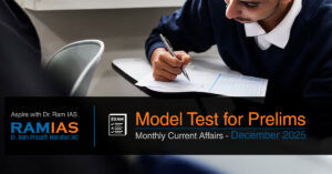 Aspire with Dr. Ram IAS Monthly Current Affairs Model Test for Prelims - December 2025 0% 47 Model Test for Prelims : December-2025 Monthly Current Affairs 1 / 15 Category: November-2025 1. Consider the following statements related to the Vanadium Redox Flow Battery (VRFB) system recently promoted in India: It uses vanadium ions in varying oxidation states within liquid electrolytes to store energy. The electrolyte capacity becomes permanently damaged if the battery is completely discharged. Power rating and energy capacity in VRFBs can be varied independently. Which of the above is/are correct? A) 1 and 2 only B) 1 and 3 only C) 2 and 3 only D) 1, 2 and 3 2 / 15 Category: November-2025 2. In the light of recent developments in Shram Shakti Niti 2025, consider the following: It proposes a Universal Social Security Account integrating EPFO, ESIC, PM-JAY, and e-Shram. It aims to transform the National Career Service into an AI-driven Employment Digital Public Infrastructure. It eliminates the need for any digital compliance portals for enterprises. Which of the statements given above is/are correct? A) 1 and 2 only B) 2 and 3 only C) 1 and 3 only D) 1, 2 and 3 3 / 15 Category: November-2025 3. Which of the following correctly describes the conservation and habitat status of the Great Indian Bustard (GIB)? A) It is protected under Schedule I of the Wildlife Protection Act, 1972, and is native to India’s arid and semi-arid grasslands B) It lives mainly in wetlands and is listed as Endangered by the IUCN C) It is a migratory species protected under Schedule II of the Wildlife Protection Act D) It is found across Asia and Africa and is classified as Vulnerable by the IUCN 4 / 15 Category: November-2025 4. With reference to the National Policy on Geothermal Energy 2025, consider the following statements: The policy promotes 100% foreign direct investment in geothermal projects. MNRE has identified over 350 hot springs and 10 geothermal provinces across India. Projects under the policy are supported for a maximum period of 10 years. Which of the statements given above is/are correct? A) 1 and 2 only B) 2 only C) 1 and 3 only D) 1, 2 and 3 5 / 15 Category: November-2025 5. Ricin, Some time seen in the news, consider the following statements: Ricin is derived from the waste mash left after processing castor beans. It is listed under Schedule 1 of the Chemical Weapons Convention (CWC). An effective antidote for ricin poisoning exists but is rarely used due to cost. Which of the statements given above is/are correct? A) 1 and 2 only B) 2 and 3 only C) 1 and 3 only D) 1, 2 and 3 6 / 15 Category: November-2025 6. With reference to Birsa Munda and the Janjatiya movement, consider the following statements: The Ulgulan movement led by Birsa Munda primarily emphasized tribal rights, cultural identity, and resistance to colonial oppression. The Government of India declared Birsa Munda’s birth anniversary as Janjatiya Gaurav Divas in 2021. Birsa Munda’s movement directly resulted in the formation of Jharkhand as a separate state in 1905. Which of the statements given above is/are correct? A) 1 and 2 only B) 2 and 3 only C) 1 and 3 only D) 1, 2 and 3 7 / 15 Category: November-2025 7. Which of the following correctly reflects the key provisions of the Digital Personal Data Protection Rules, 2025? A) All data fiduciaries receive a uniform 18-month transition period, and Significant Data Fiduciaries must conduct DPIAs and appoint an independent DPO B) Only Significant Data Fiduciaries are given a transition period, while others must comply immediately C) The Rules impose a complete ban on cross-border data transfers D) The Rules require only government entities to appoint a Data Protection Officer 8 / 15 Category: November-2025 8. Which of the following Geographical Indication (GI) products is correctly matched with its state? Ambaji White Marble — Rajasthan Panna Diamond — Madhya Pradesh Lepcha Tungbuk — Sikkim Select the correct answer using the code given below: A) 1 and 2 only B) 2 and 3 only C) 1 and 3 only D) 1, 2 and 3 9 / 15 Category: November-2025 9. With reference to the 16th Finance Commission, consider the following statements: It is established under Article 280 of the Constitution. Its recommendations become effective only after approval by Parliament. It is constituted every five years or earlier by the President. Which of the statements given above is/are correct? A) 1 and 3 only B) 2 and 3 only C) 1 and 2 only D) 1, 2 and 3 10 / 15 Category: November-2025 10. Regarding the Climate Risk Index (CRI) 2026, consider the following statements: It ranks countries based on observed human and economic impacts of extreme weather events. It uses disaster data primarily from EM-DAT along with datasets from the World Bank and IMF. India was ranked the most affected country in the world in the 2024 CRI assessment. Which of the statements given above is/are correct? A) 1 and 2 only B) 2 and 3 only C) 1 and 3 only D) 1, 2 and 3. 11 / 15 Category: November-2025 11. With respect to the Global Methane Hotspots and UN findings, which of the following statements is/are correct? India is the world’s second-largest methane emitter after China. Crop-residue burning has recently emerged as a major methane-emission hotspot in India. Methane has a higher global warming potential than CO₂ but remains in the atmosphere for a shorter duration. Select the correct answer using the codes below: A) 1 and 2 only B) 2 and 3 only C) 1 and 3 only D) 1, 2 and 3 12 / 15 Category: November-2025 12. Which of the following best describes the Methane Alert and Response System (MARS)? A) A UNFCCC mechanism that assists developing countries in methane trading. B) A satellite-based system designed to detect major methane-emission sources in real time for rapid mitigation. C) An IPCC tool used for estimating long-term methane concentration projections. D) A global consortium promoting methane capture from rice cultivation. 13